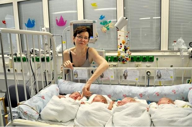 Mother Annegret Raunigk is believed to be the oldest woman to have ever delivered quadruplets.